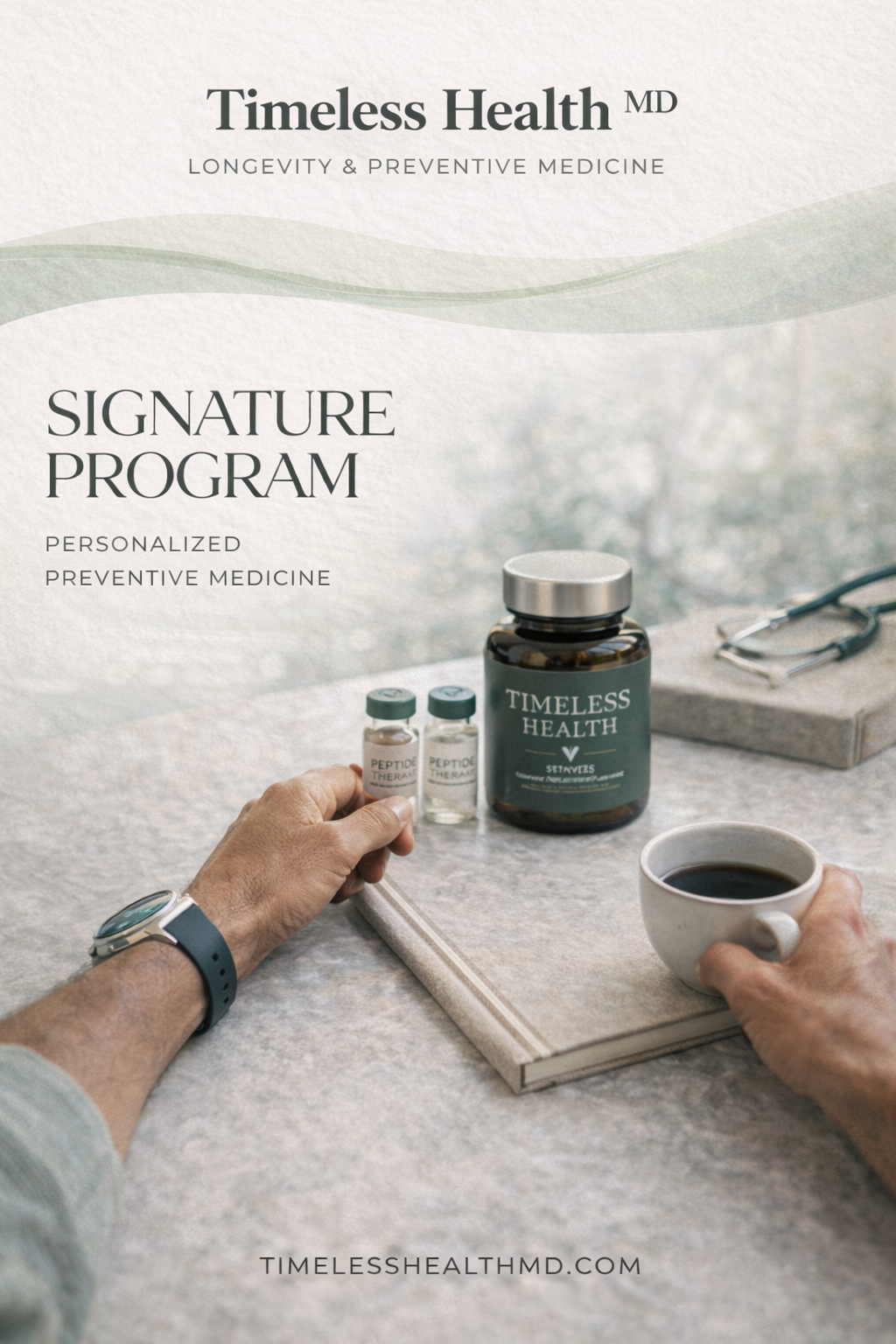 At Timeless Health, the same approach is taken to developing a diet and eating lifestyle for each patient. This is part of your personalized treatment plan, which uses a functional medicine model to determine your risk profile and how nutrition can be used to improve quality of life and longevity.